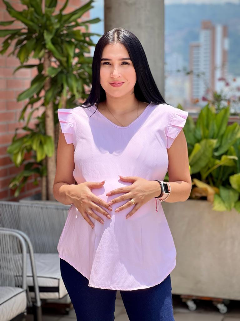 Está confeccionada en tela fresca y liviana, pensada para brindarte mayor comodidad durante tus jornadas laborales. Puedes ajustarla en la espalda o justo debajo del busto, según tu preferencia, para lograr la horma ideal en cada etapa del embarazo.