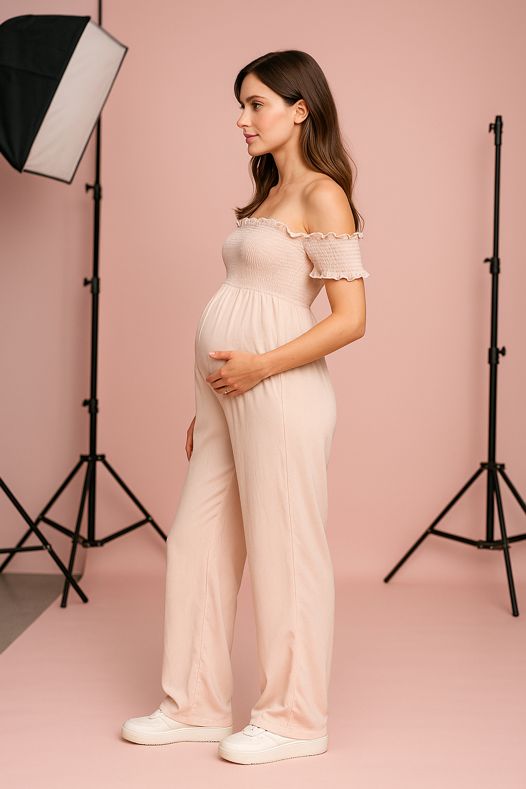Su diseño con elástico en la parte superior se adapta cómodamente desde el día 0 hasta los 9 meses. Cuenta con bolsillos laterales funcionales y una caída fluida que brinda comodidad y estilo en cualquier ocasión.