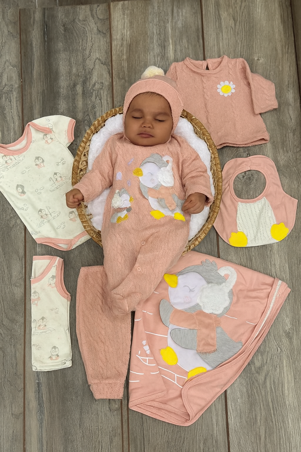 Este set de 7 piezas está diseñado para brindar comodidad y ternura a tu bebé en cada momento del día. Incluye: