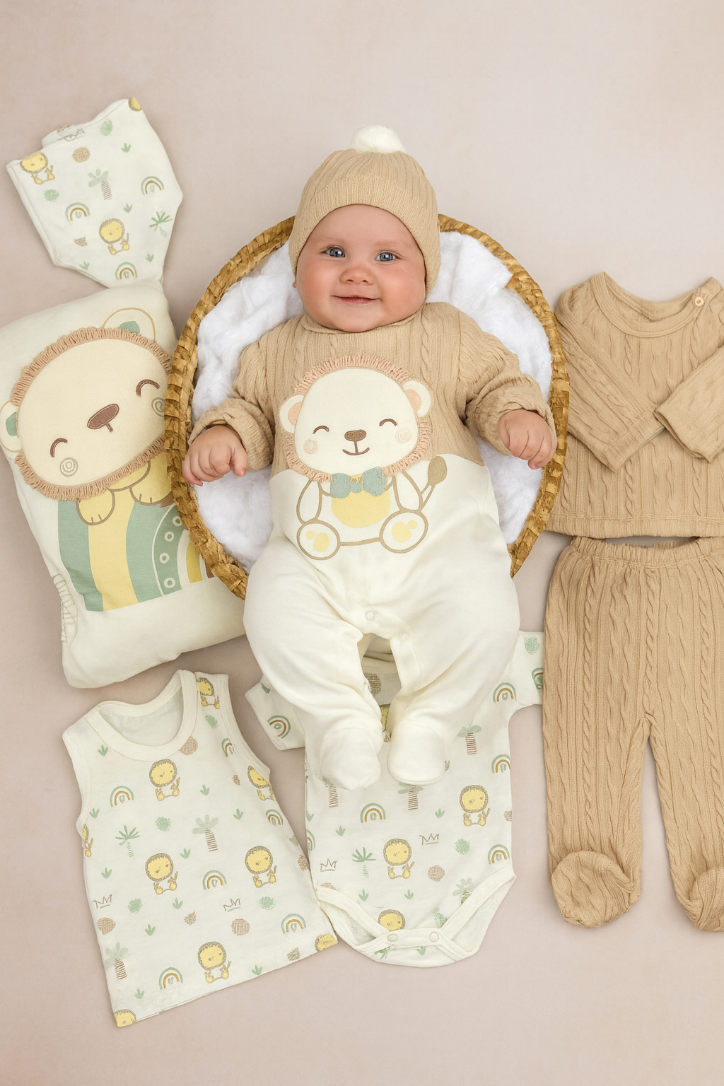 Este encantador set de bienvenida x8 piezas, incluye todo lo necesario para vestir y abrigar a tu peque con comodidad y ternura. Está compuesto por: