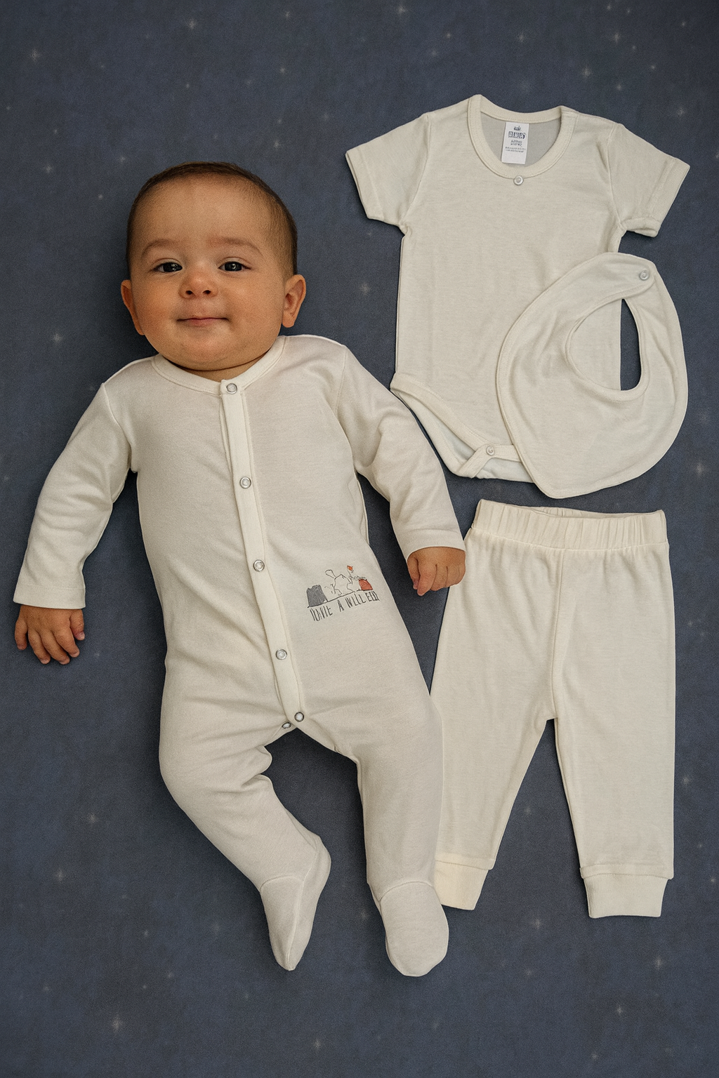 Cada prenda está confeccionada en telas frescas, suaves y antialérgicas, que cuidan la delicada piel del bebé y permiten libertad de movimiento.